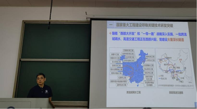 刘泉声院长以国家科技进步奖二等奖——深部复合地层隧(巷)道TBM安全高效掘进控制关键技术为例,讲述了复杂地层深长隧道TBM安全高效掘进控制关键技术对服务国家重大需求的现实意义,详细介绍了以TBM为代表的大国重器卡脖子技术突破彰显的大国力量。刘院长勉励工科试验班学生“百尺竿头更进一步”,号召学生“以国家需求作为事业追求”,认清数字经济发展新趋势,准确识变,科学应变,主动求变,助力中国经济巨轮破浪前行,行稳致远。