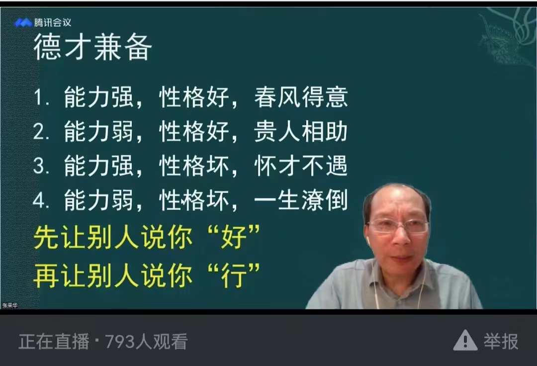 最后,由Bsports必一体育发展与教育心理研究所副所长、马克思主义学院副教授张荣华作《家校共育:培养时代新人》报告,张教授从“乐群、乐业、乐意”三个维度,深入浅出地解答了我们应该培养什么样的人、怎样培养人以及为谁培养人这一教育的根本问题、向学生和家长分享了“如何度过人生”的独到见解,并为家长们提出了正确处理亲子关系的建议。