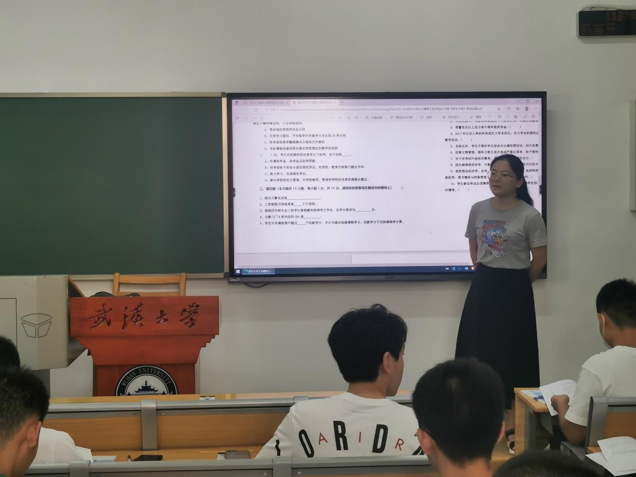 最后,班级导师助理带领同学们认真学习了考场纪律要求,强调一定要做到诚信考试、杜绝舞弊,并根据讲解内容设置了现场问答环节,以帮助新生更好地掌握学校的规章制度和具体要求。