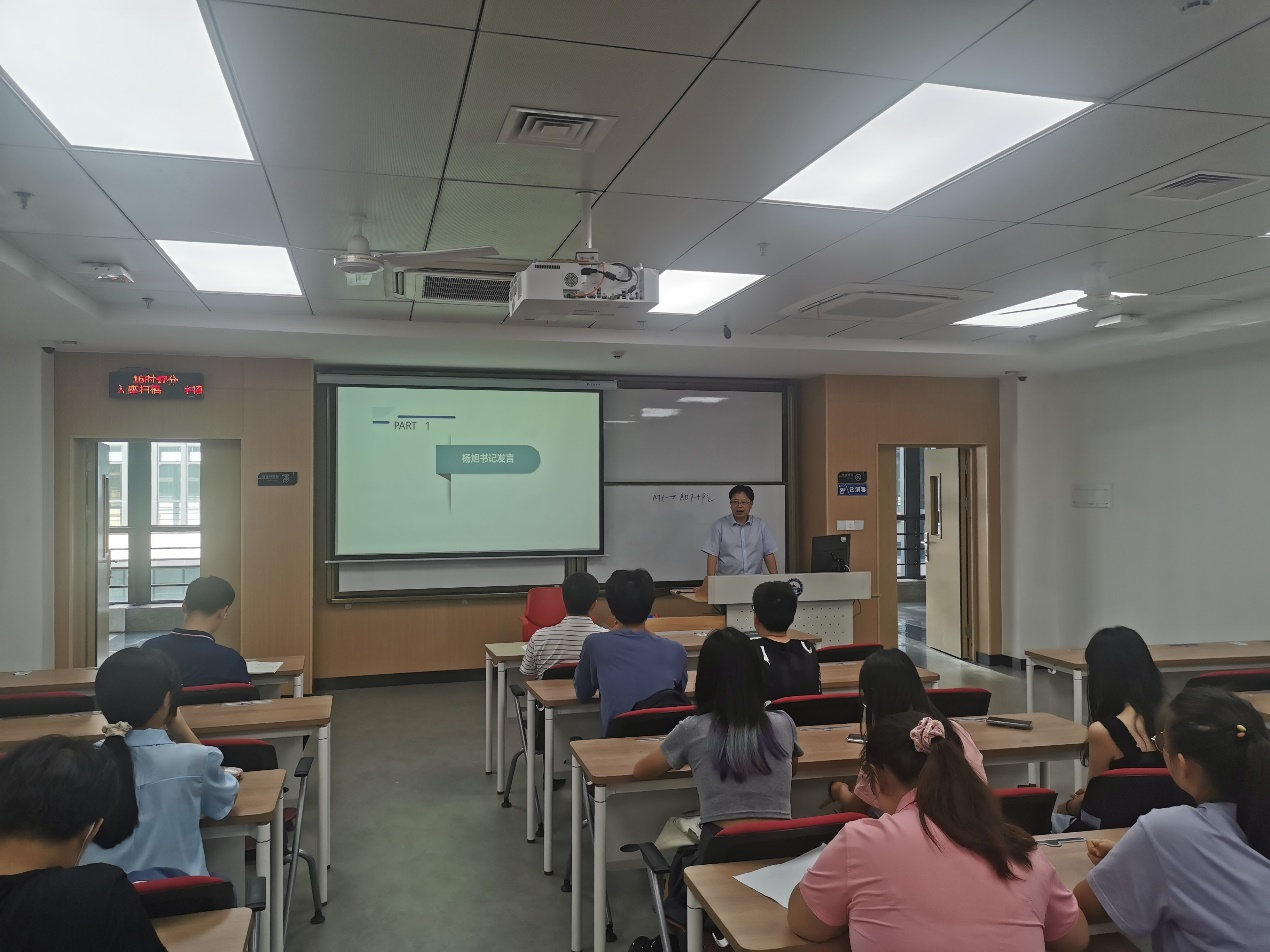 接下来杨书记为新一届学习指导师播放了2022届毕业学长李艺新同学的视频,在视频中,李艺新学长从入职前准备工作、正式踏入职场以及入职后的工作学习三个方面与同学们进行了精彩的分享,以自身的经历给学习指导师们带来扎实开展工作的思考。