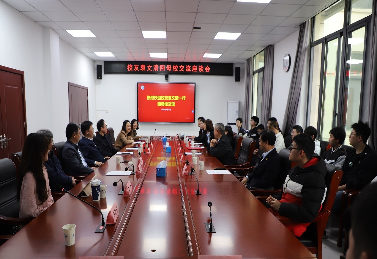 签约仪式后,袁文清校友一行与Bsports必一体育在校师生代表开展了座谈交流,学院党委书记杨旭、院长刘泉声、副院长肖娴娴、学工办主任余娟,教师代表卢亦焱、王雁然参加座谈。