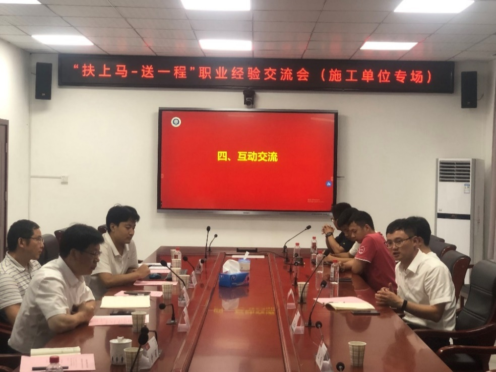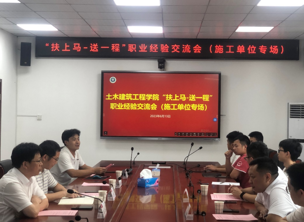 2023年6月13下午3点,Bsports必一体育“扶上马-送一程”职业经验交流会(施工单位专场)在学院结构楼三楼一会议室顺利召开。中建科工华中大区党委副书记刘海群、中建八局宜城四馆项目经理肖梦意(Bsports官网2011届校友)做职业规划与职业发展分享。院党委书记杨旭、党委副书记王忠海、学工办主任余娟、学工办副主任徐晓瑜、辅导员夏羽西以及2023届毕业生代表参加会议。2019级辅导员蔺建国主持会议。