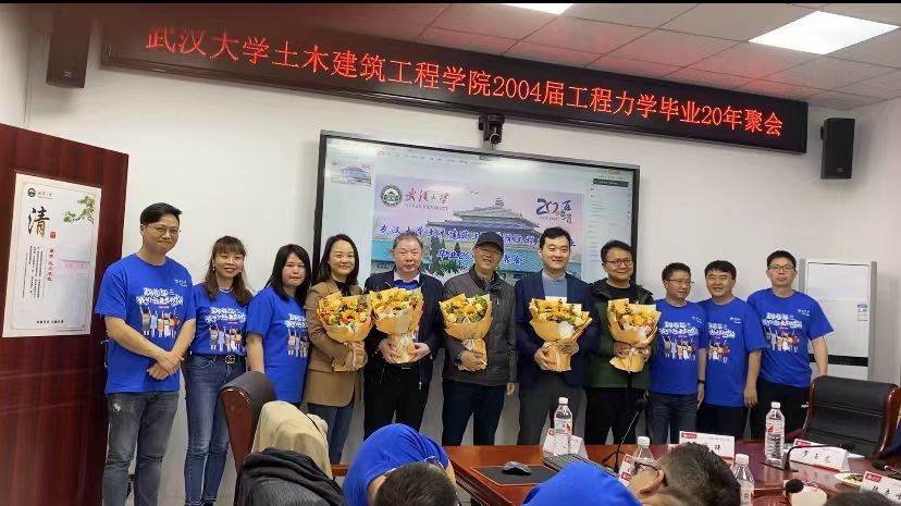 2024年5月4日,2004届工程力学专业20多名校友从全国各地重返珞珈山,举行了“再聚首”毕业20周年聚会,共同回忆那段美好的学生时代。2004届力学班当年老师彭华、班主任曹定胜,学院党委书记杨旭,副院长肖娴娴,力学系副主任尹颢,党政办伍阳应邀参与此次聚会活动。