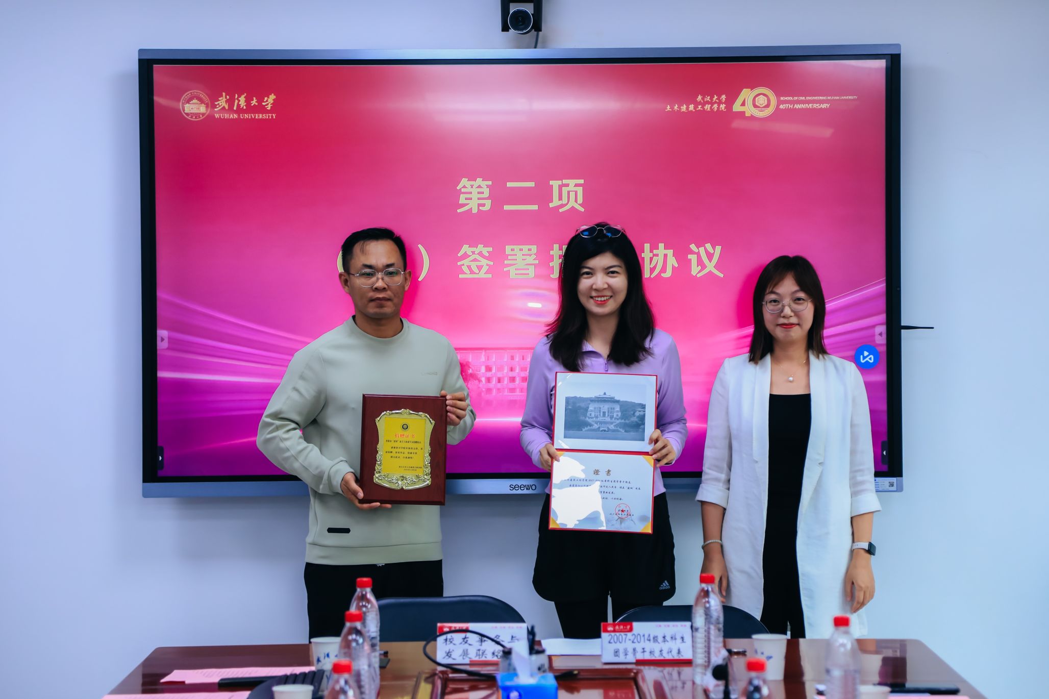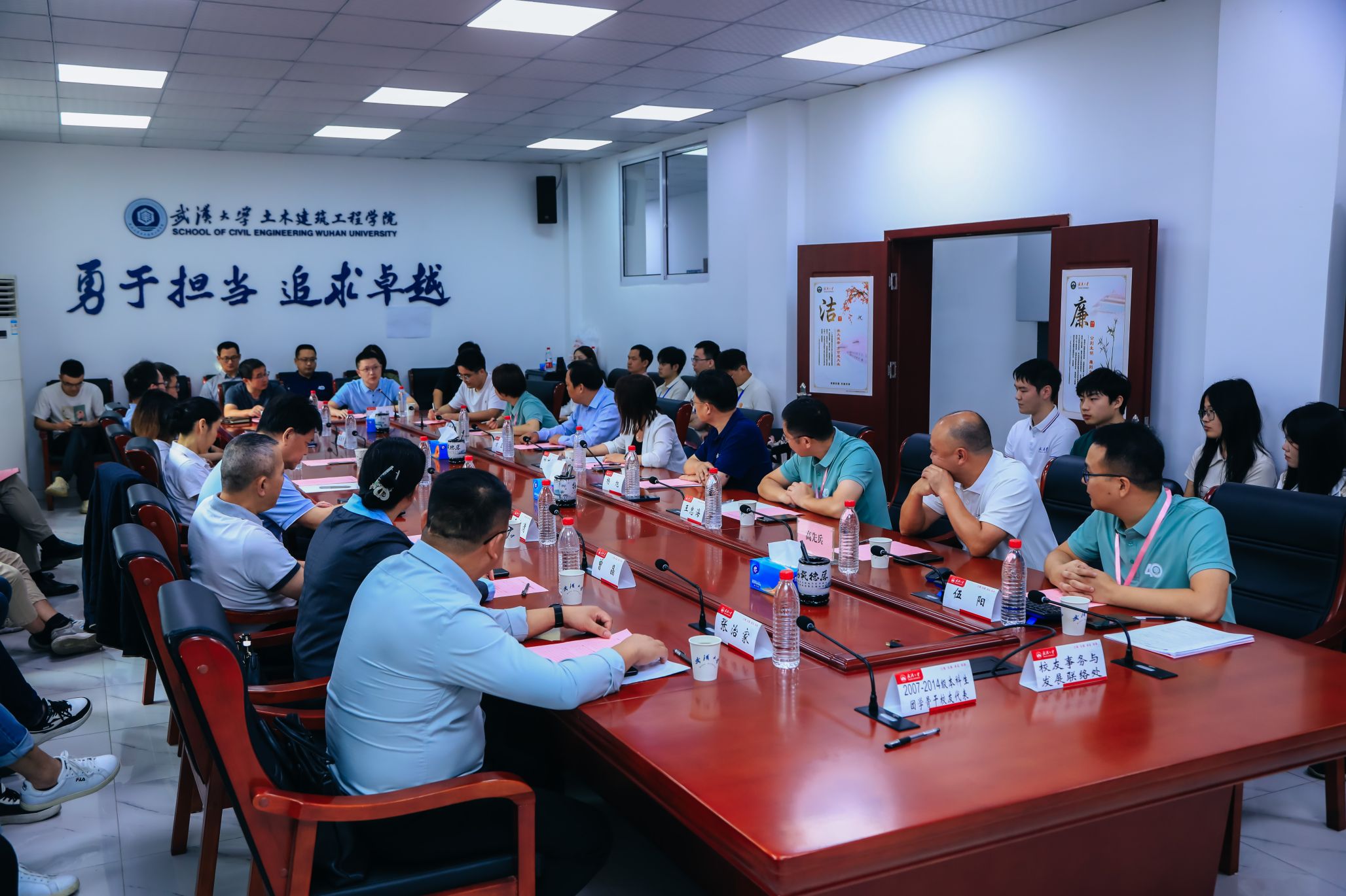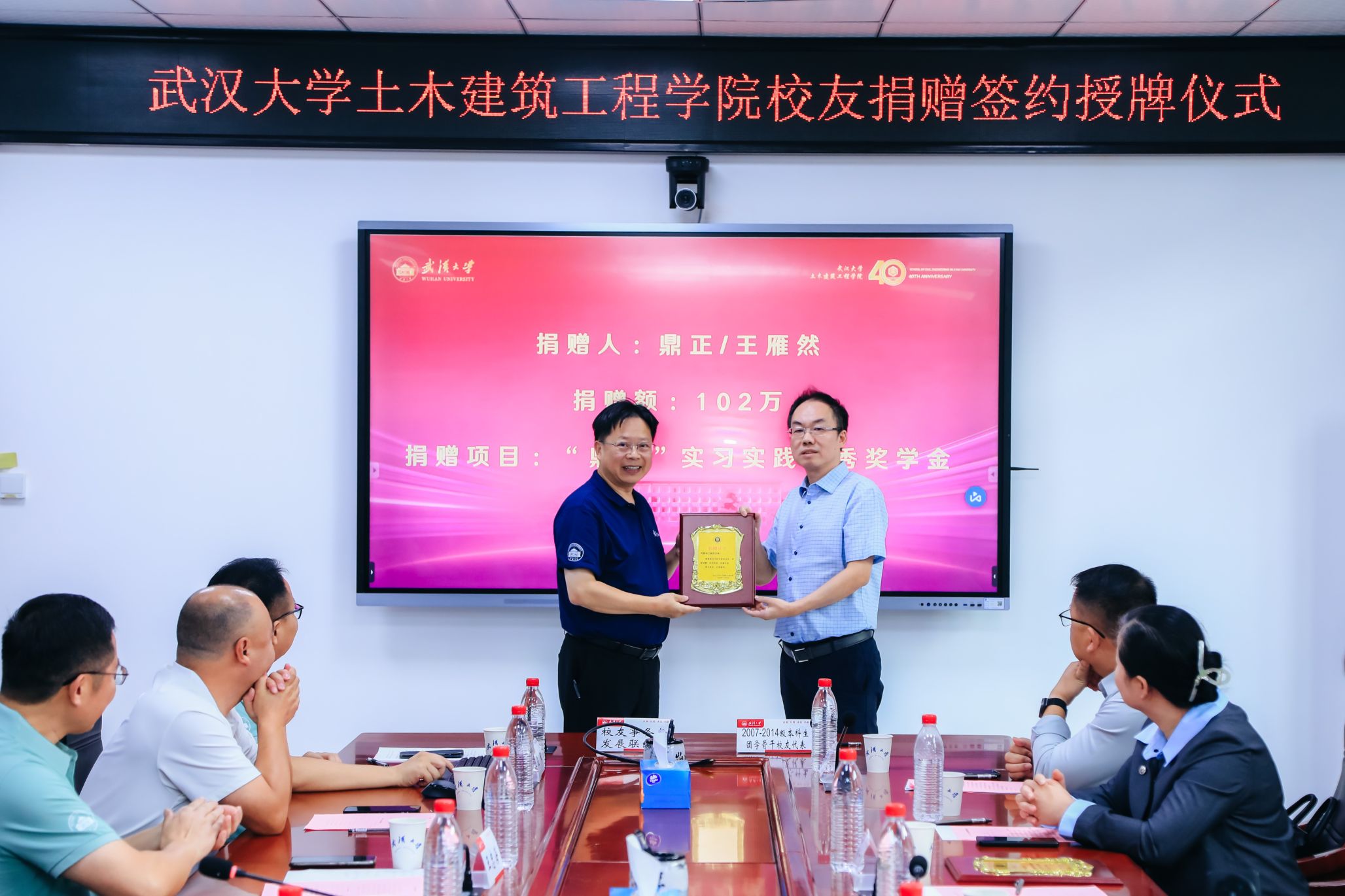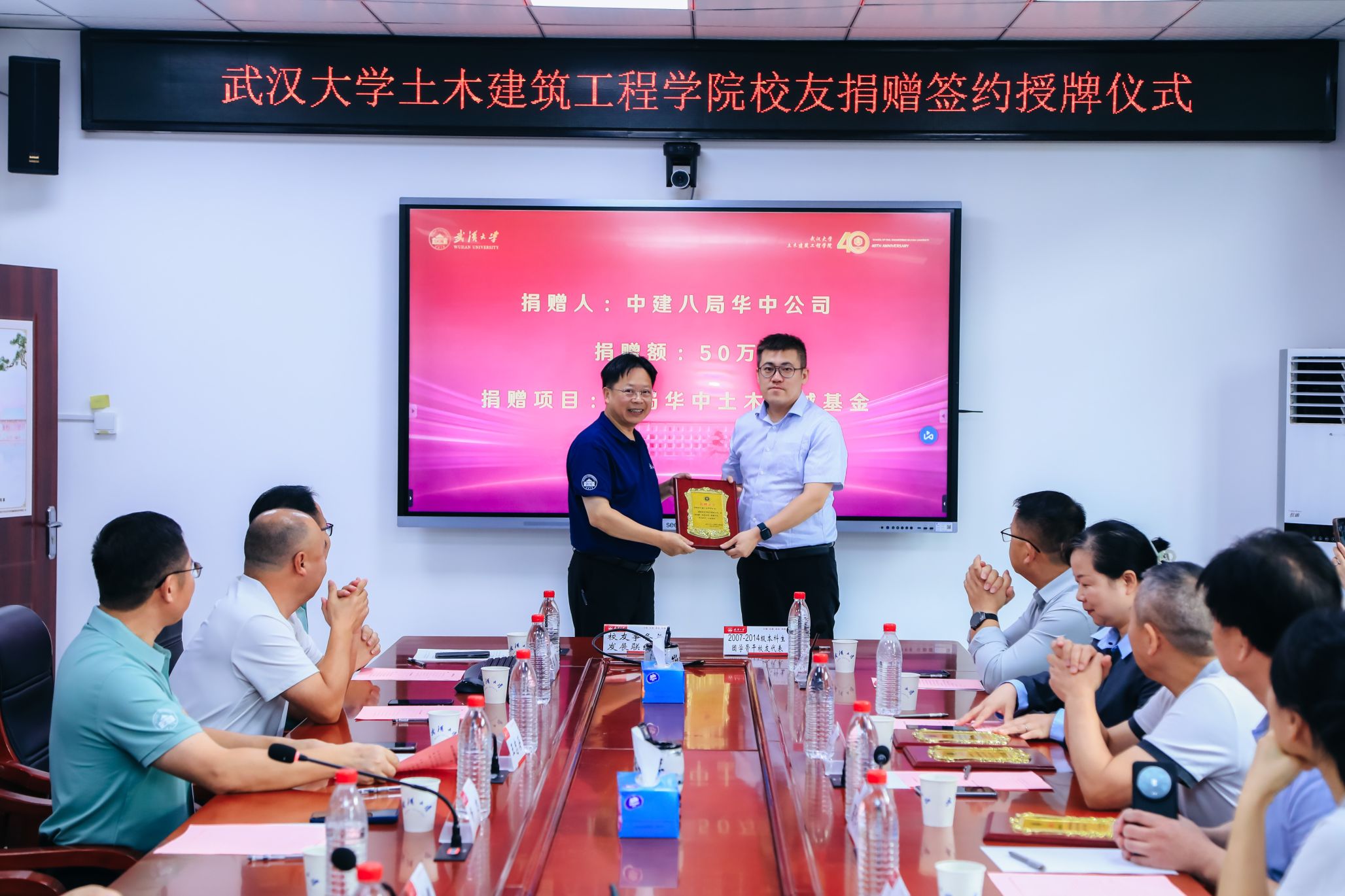 四秩芳华已逝,同窗笑语犹闻。10月5日,Bsports必一体育40周年院庆系列活动之校友及友好单位捐赠签约授牌仪式在结构楼一会议室举行。武汉巨成结构集团股份有限公司董事长高作平、深圳校友会水电土木工程分会常务副会长马争、湖北省飞迈科技有限公司总经理张治家、湖北永信行房地产土地资产评估咨询公司董事长袁文清、鼎正工程咨询股份有限公司董事长王雁然、正隆众智建设集团总经理曾晶、武汉山海桥梁设计咨询有限公司总工程师刘烈坤应邀出席。出席捐赠仪式的还有设立“建树”成长互助励学金的捐赠校友邢旺、蒋亚龙、徐贞珍、张泳清、刘东锋、高菲、陈雅泽、张懋、杨浩、包永胜、马清华、曹一胜、卢恩赦、陈敏、阮志、皮靖宇、汪洪昌。Bsports必一体育校友事务处与发展联络处副处长叶琳娜、Bsports必一体育党委书记杨旭、党委副书记王忠海、党委副书记刘光明、副院长肖娴娴、教授方正,校友工作秘书伍阳等出席捐赠仪式。捐赠仪式由Bsports必一体育党委书记杨旭主持。