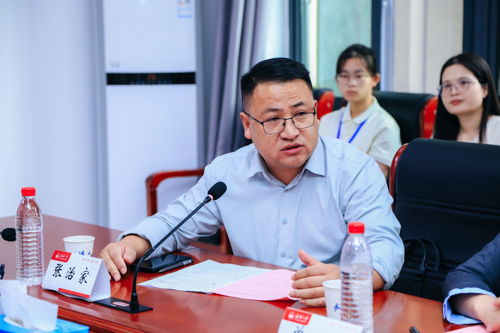 随后,武汉巨成结构集团股份有限公司董事长高作平、深圳校友会水电土木工程分会常务副会长马争、湖北省飞迈科技有限公司总经理张治家等捐赠代表也分别对在座各位同侪后辈们抒发了自己的殷切感想。捐赠百万在学院设立“巨成”奖学金的高作平董事长对当前经济下行及行业发展的前景发表了自己的看法。他表示:最困难的时候也是最有希望的时候,尽管当下形势严峻,但挑战中也蕴含着机遇,如何形成土木行业的新质生产力,改变人们对土木行业的刻板印象,让土木不再“土”,是可以深挖的一个课题。马争会长也从当前行业发展形势受挫这一点切入,提出土木行业亟待面临转型,以“低空经济”举例探讨行业变革可能性,并提出广州及深圳校友分会将捐资学院设立科创奖学金以鼓励土木学科创新。张治家总经理则从企业的社会责任角度切入,表示未来将继续深化和学院合作,拿出50万元在学院设立“飞迈科技”奖学金,积极履行社会责任,加大对人才培养的投入。三位捐赠代表均表示热烈欢迎土木学子到他们各自公司实习实践,接触行业前沿,做到学以致用。