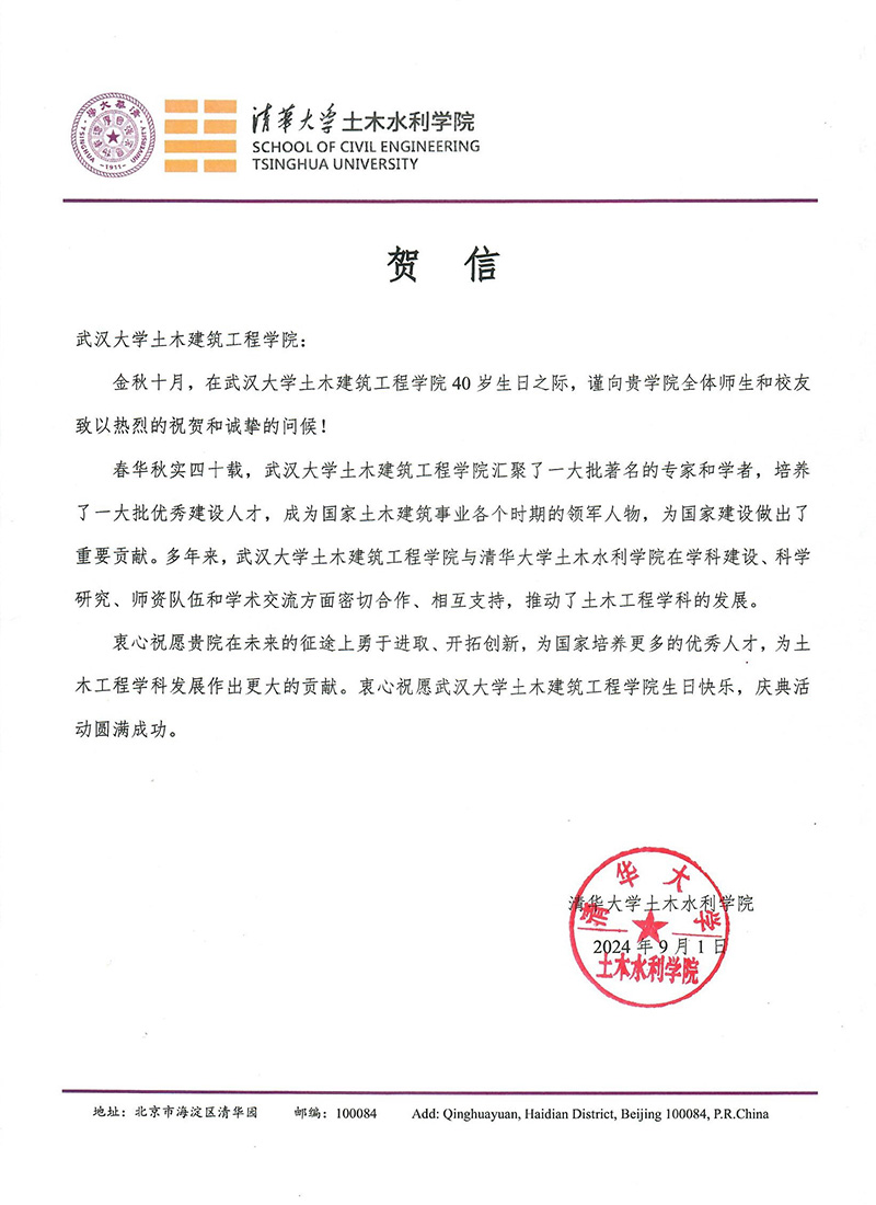 清华大学土木水利学院贺信