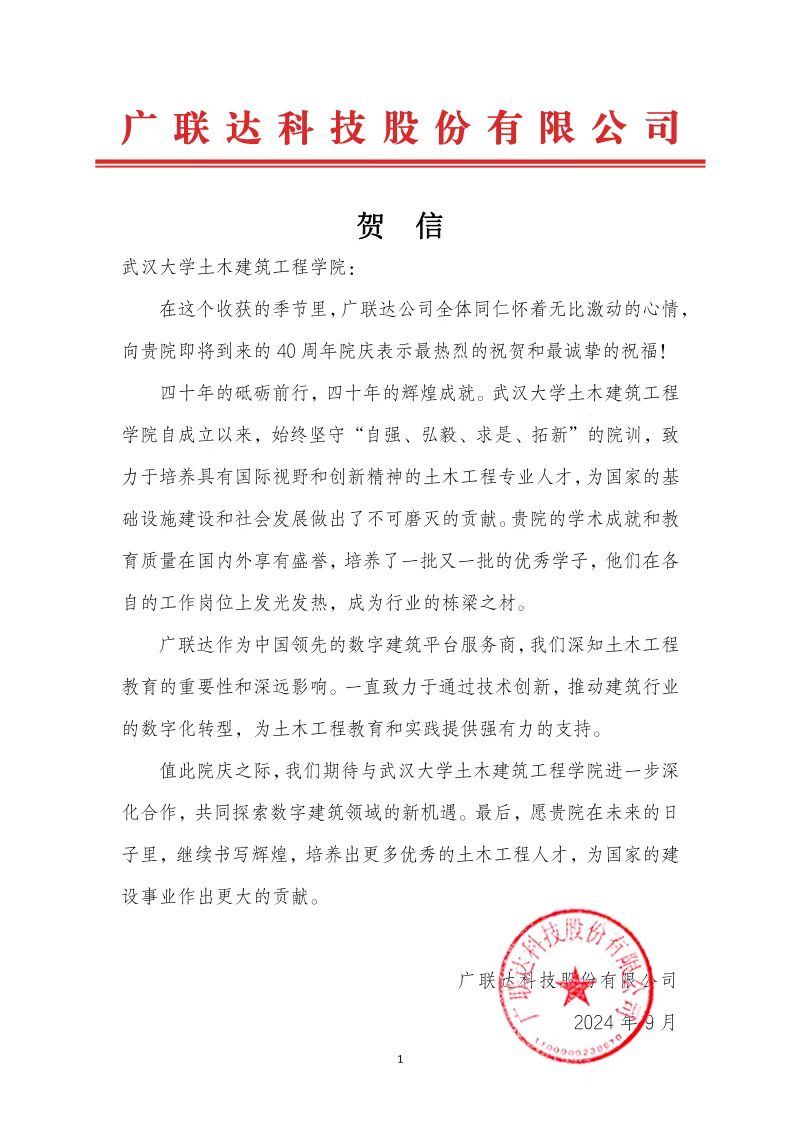广联达科技股份有限公司贺信